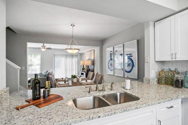 Naples' only townhome rental community featuring bright and airy living areas, modern kitchens and laundry rooms with full-sized washer and dryer.