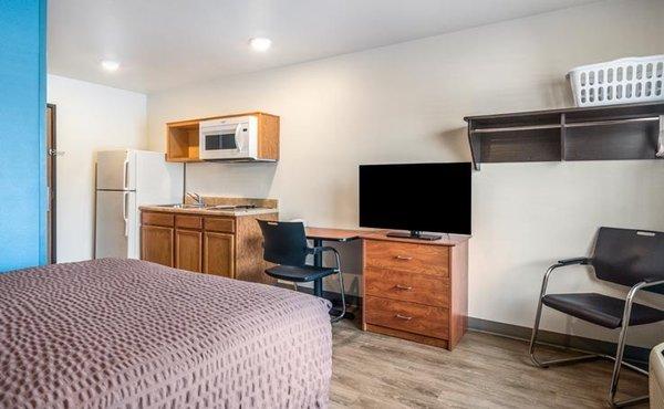 WoodSpring Suites is a collection of budget-friendly extended stay hotels that offer smartly-designed suites with in-room kitchens, providing guests with a comfortable and affordable home-like experience. With a commitment to cleanliness and 24/7 access to essential amenities, WoodSpring Suites ensures a convenient and hassle-free stay. Whether staying for a night, a week, or a month, guests can enjoy affordable rates and the convenience of having a kitchen in every suite.