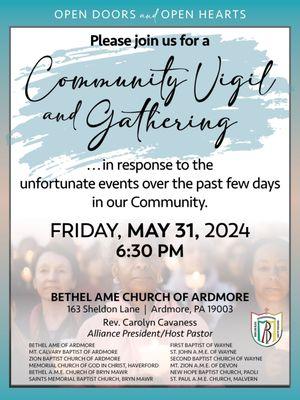 Bethel A.M.E. Church in Ardmore, PA, is a part of the African Methodist Episcopal Church, the first major religious denomination in the Western world founded on sociological and theological principles that advocate for the dignity of all individuals, especially those of African descent. With a mission to meet the spiritual, intellectual, physical, emotional, and environmental needs of all people, the church aims to spread Christ's liberating gospel through both word and deed.