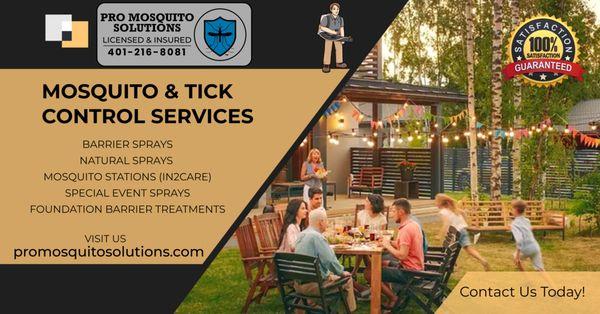 Pro Mosquito Solutions safeguards Rhode Island and Southeastern Massachusetts homes from a variety of pests, including mosquitoes, ticks, fleas, mice, rats, and ants. Their expert team utilizes innovative solutions to design customized treatments, including foundation treatments, ensuring a comfortable and pest-free environment for families. Pro Mosquito Solutions empowers homeowners to reclaim their outdoor spaces by offering reliable and effective pest control management services. We're so confident in our service, we offer a guarantee!