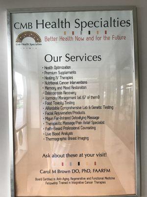 Dr. Brown, the specialist at CMB Health Specialties, focuses on treating difficult medical conditions to provide patients with help and hope, believing in the power of holistic and integrative practices for true healing.